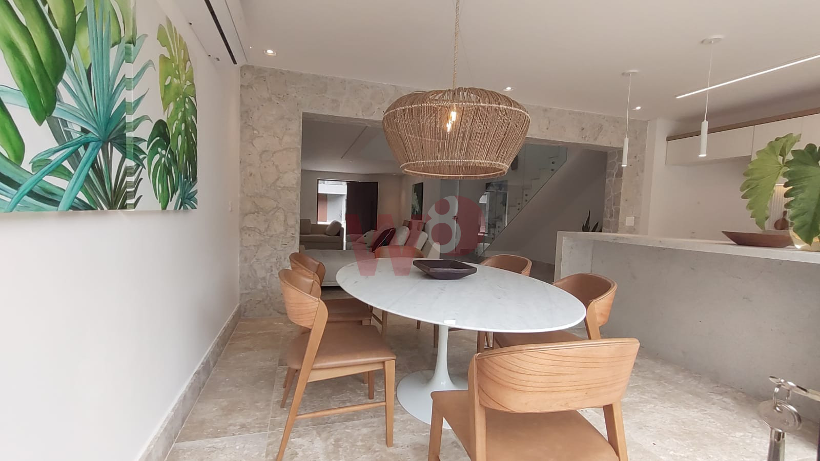 Muito bem mobiliada, a casa possui 4 suítes , lavabo, sala em 2 ambientes, cozinha, lavanderia, área gourmet com churrasqueira e piscina privativa, vagas para 4 automoveis.