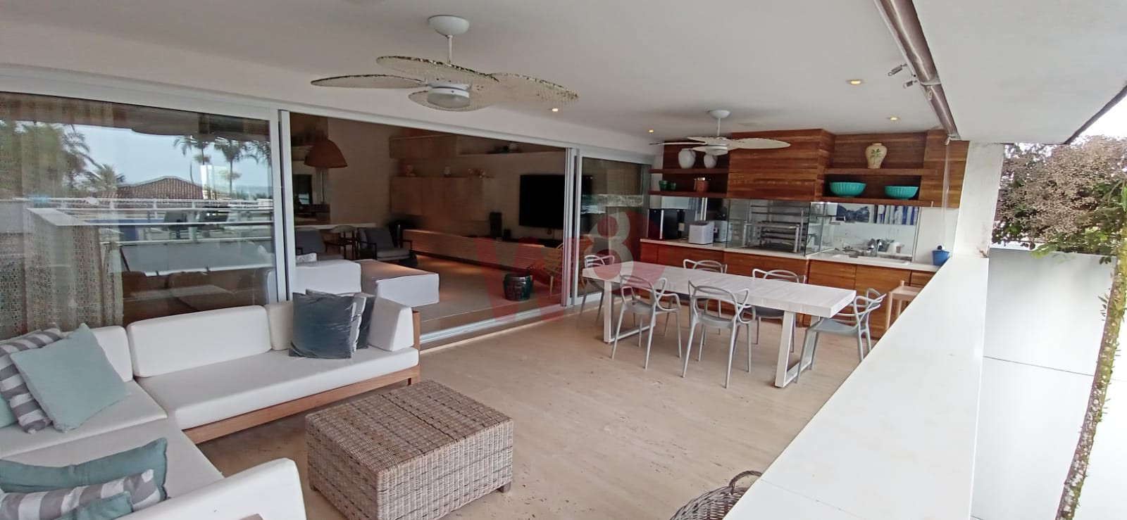 Localizada no canto direito da praia de Juquehy, com 5 suites, sala em 2 ambientes, lavabo, lavanderia, varanda gourmet, piscina privativa e 3 vagas.