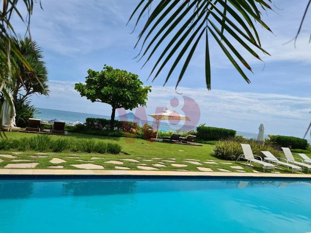 Condominio com piscina frente ao mar, zeladoria e serviço de praia.