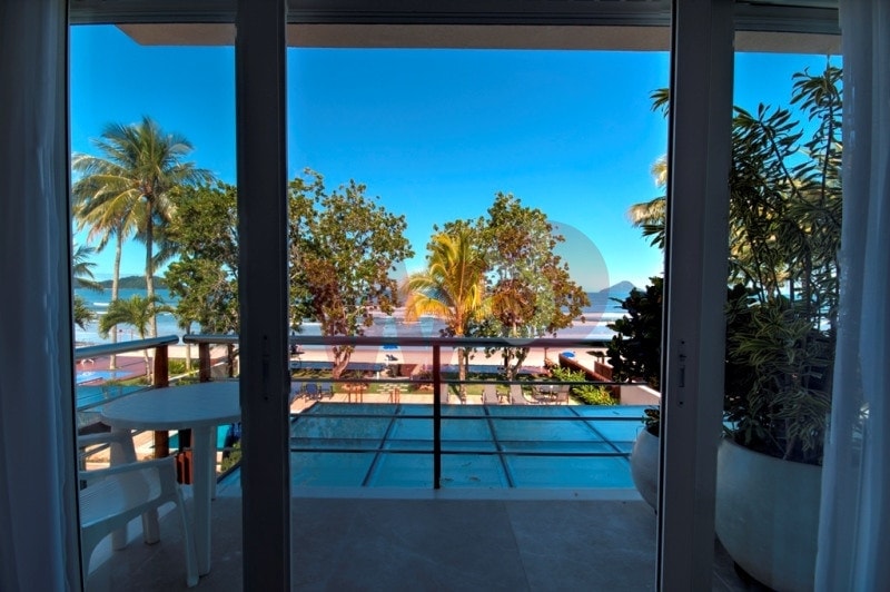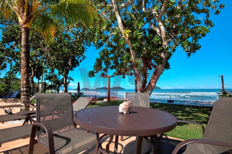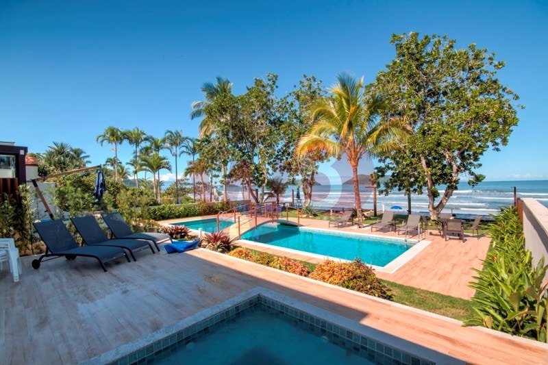 Condominio com piscina frente ao mar, zeladoria e serviço de praia.