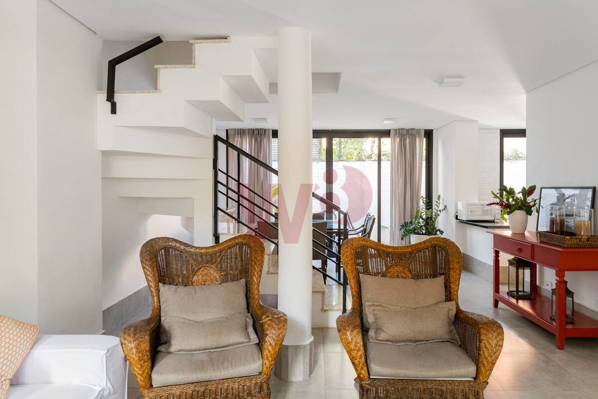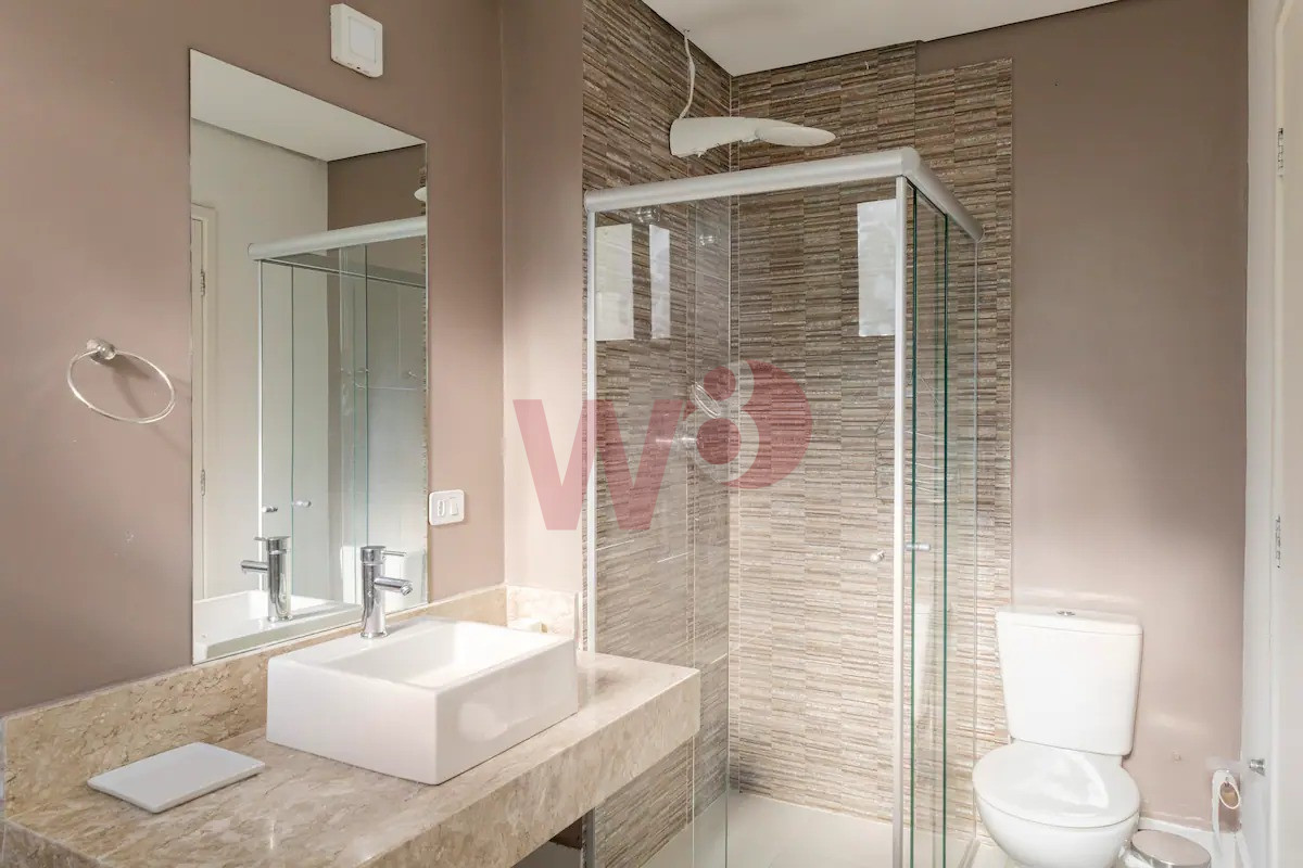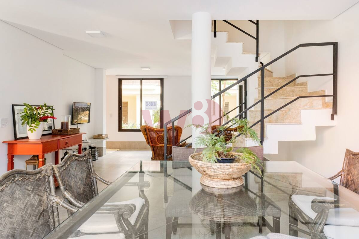 Composta por cinco dormitórios sendo três suítes, sala de estar, sala de jantar, cozinha americana, lavabo, área de serviço, três vagas na garagem e área gourmet com churrasqueira privativa.