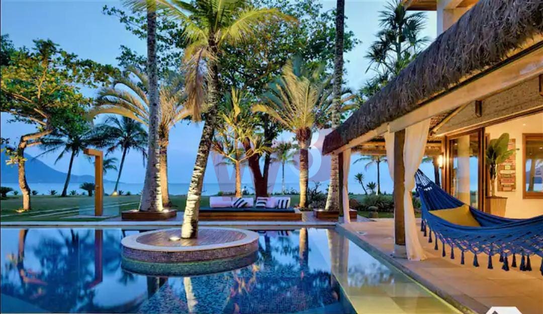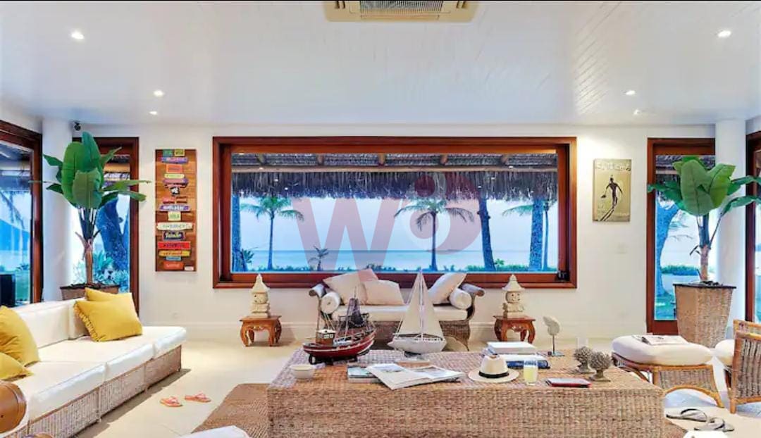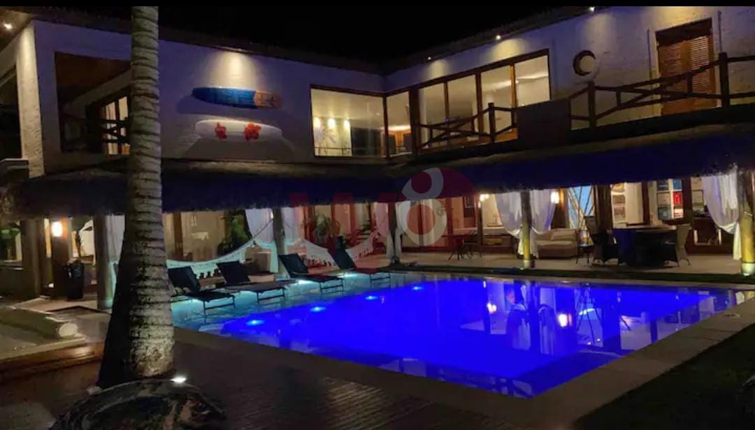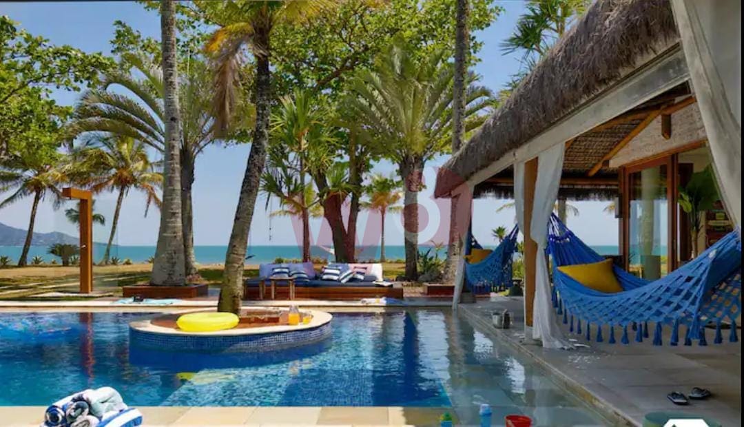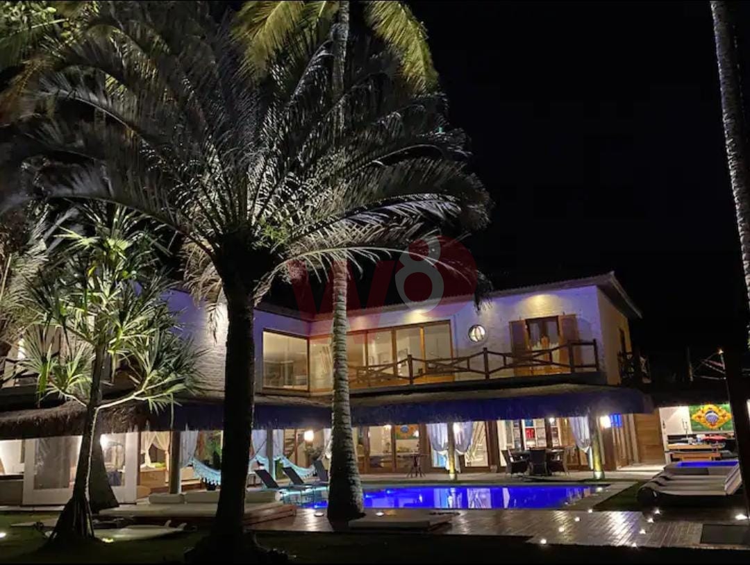 Super bem localizada, apresento a oportunidade de dias incríveis. Composta por 6 suítes amplas e bem arejadas, ar condicionado e ventilador em todos os ambientes, 1 suítes no piso térreo e 5 suítes no superior, salas de tv, sala de jantar, sala de estar, cozinha completa, área gourmet com churrasqueira, incrível gramado frente ao mar, piscina, bangalô na arvore, lavanderia, wi-fi, vista para um incrível por do sol, privacidade, capacidade para 15 pessoas, 900 metros de área construída.