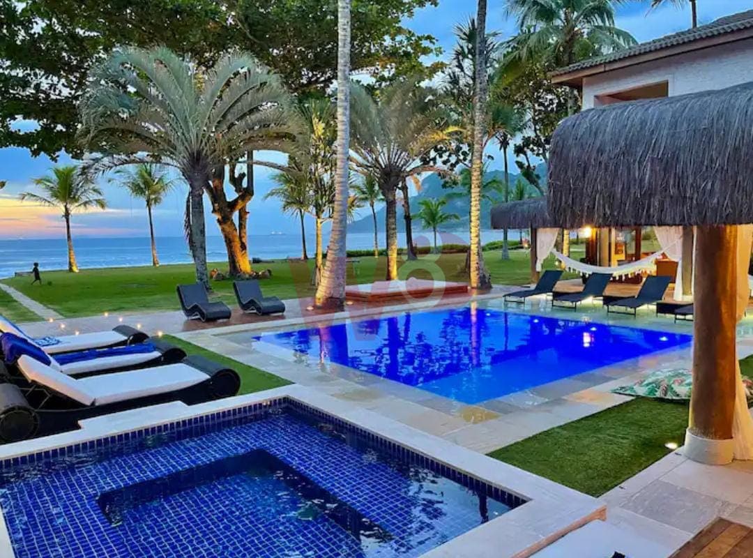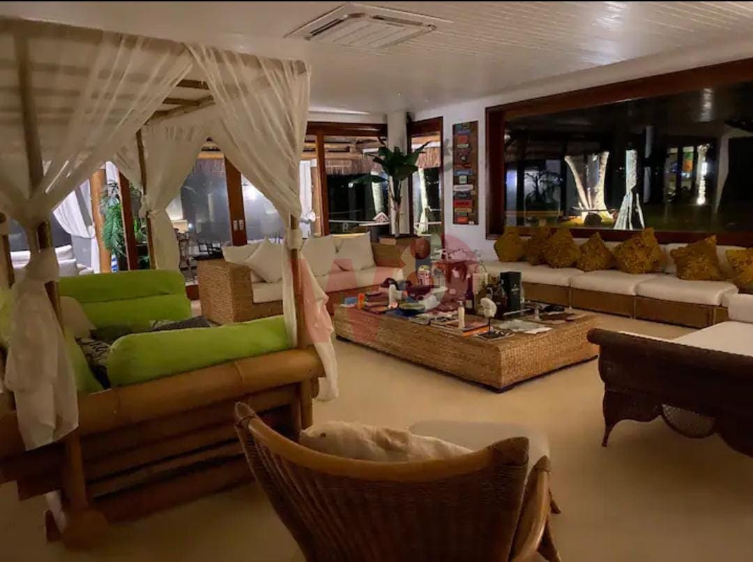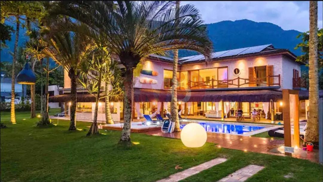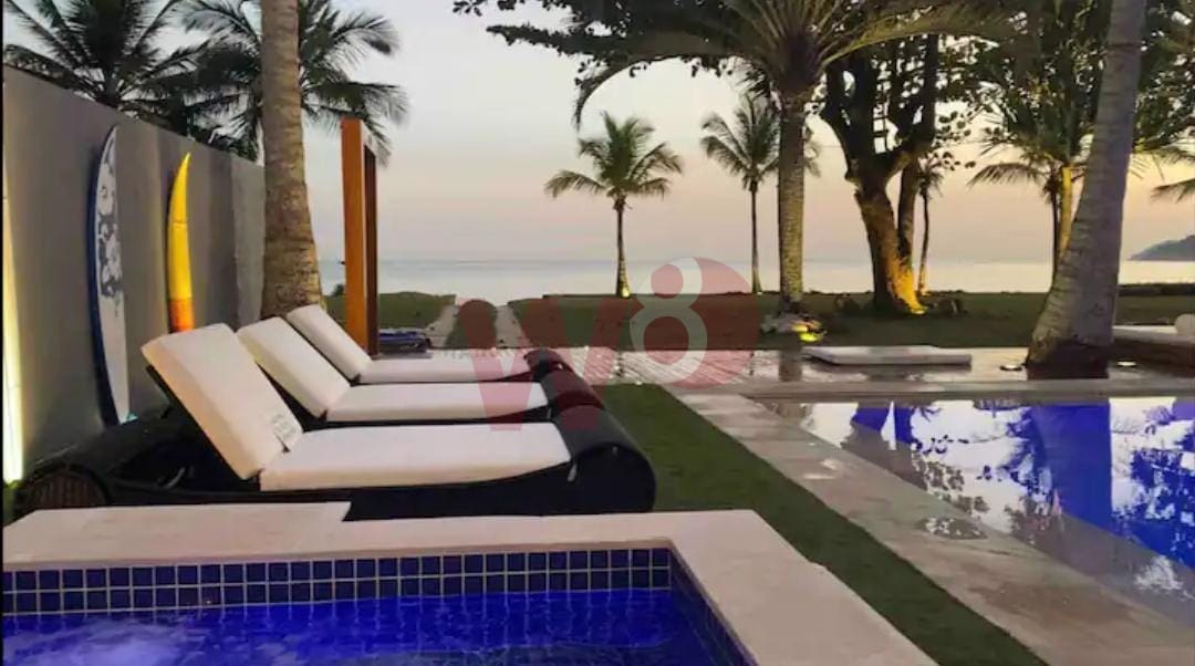 Super bem localizada, apresento a oportunidade de dias incríveis. Composta por 6 suítes amplas e bem arejadas, ar condicionado e ventilador em todos os ambientes, 1 suítes no piso térreo e 5 suítes no superior, salas de tv, sala de jantar, sala de estar, cozinha completa, área gourmet com churrasqueira, incrível gramado frente ao mar, piscina, bangalô na arvore, lavanderia, wi-fi, vista para um incrível por do sol, privacidade, capacidade para 15 pessoas, 900 metros de área construída.