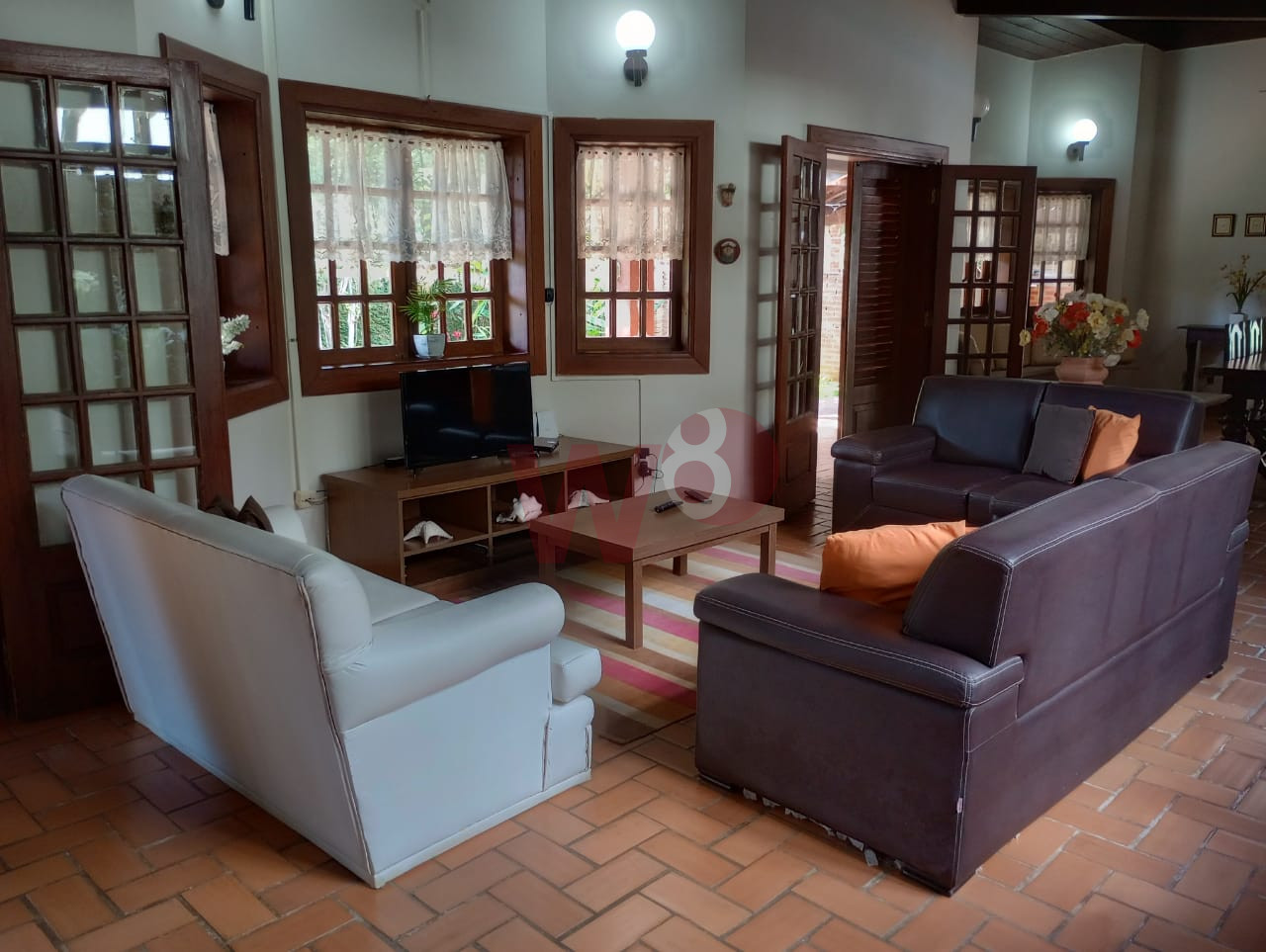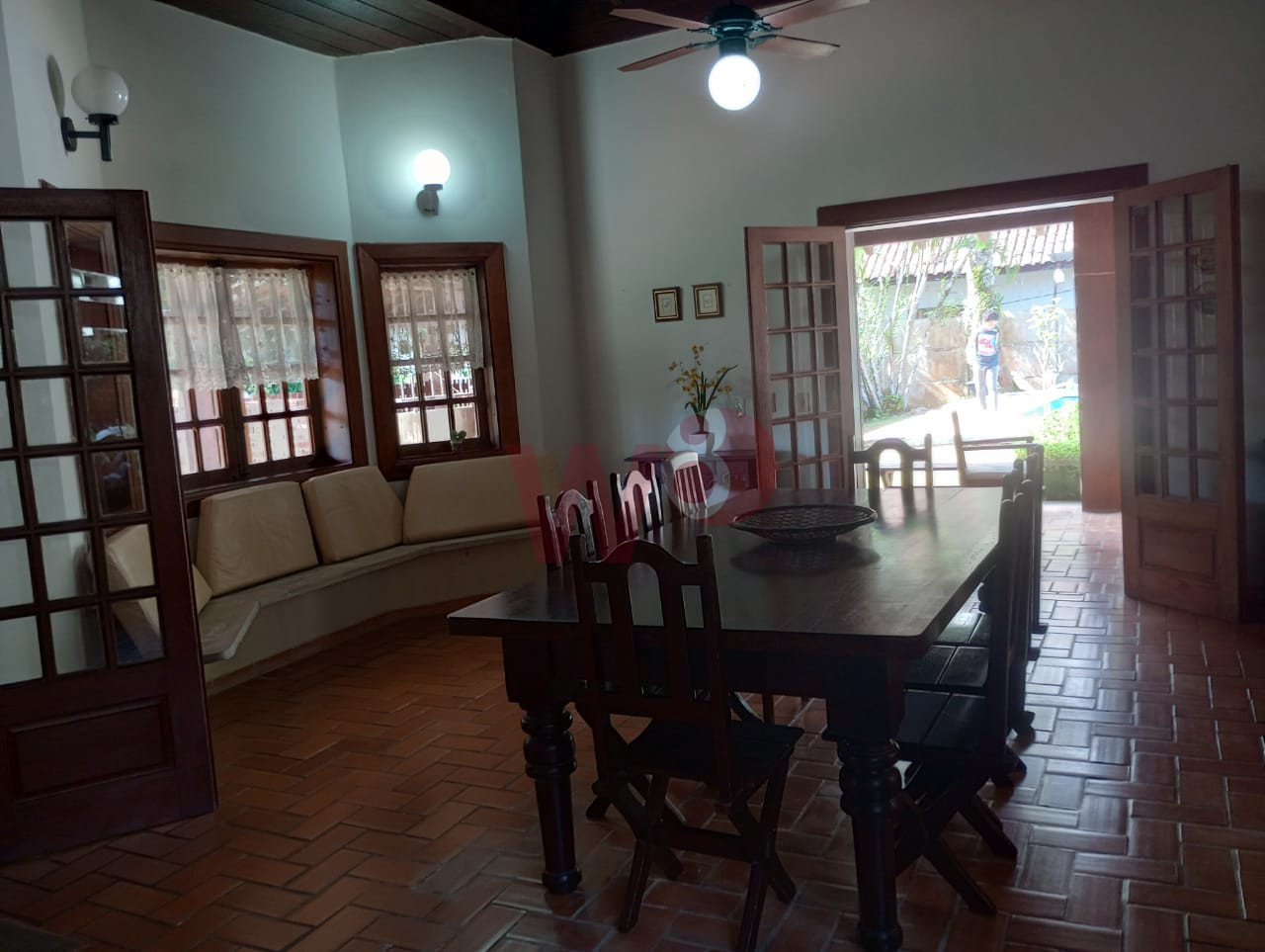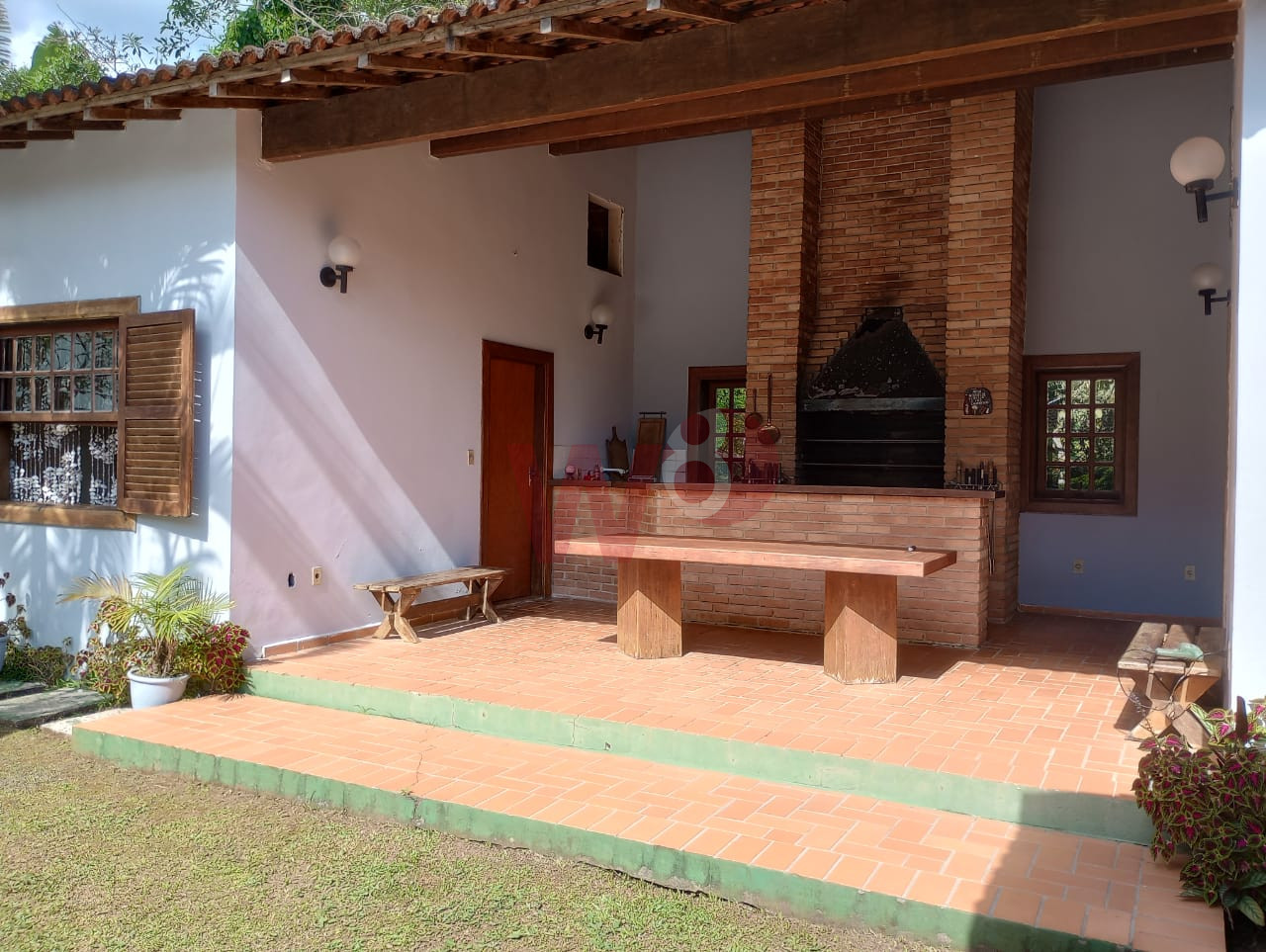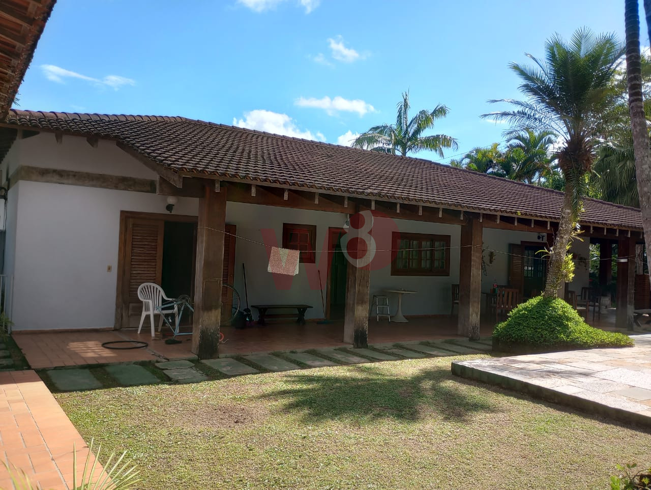 Casa fora de condomínio com 6 suítes, sendo 2 suítes externas, ar condicionados, lavabo, cozinha, sala em 2 ambientes, área de serviço, varanda com churrasqueira, piscina, 4 vagas de garagem e jardim.