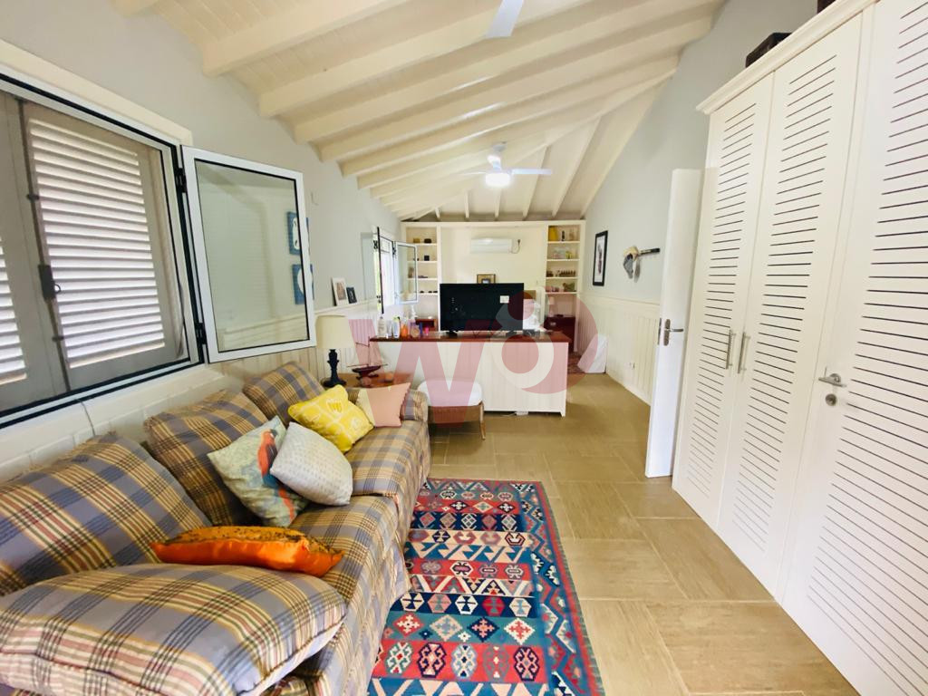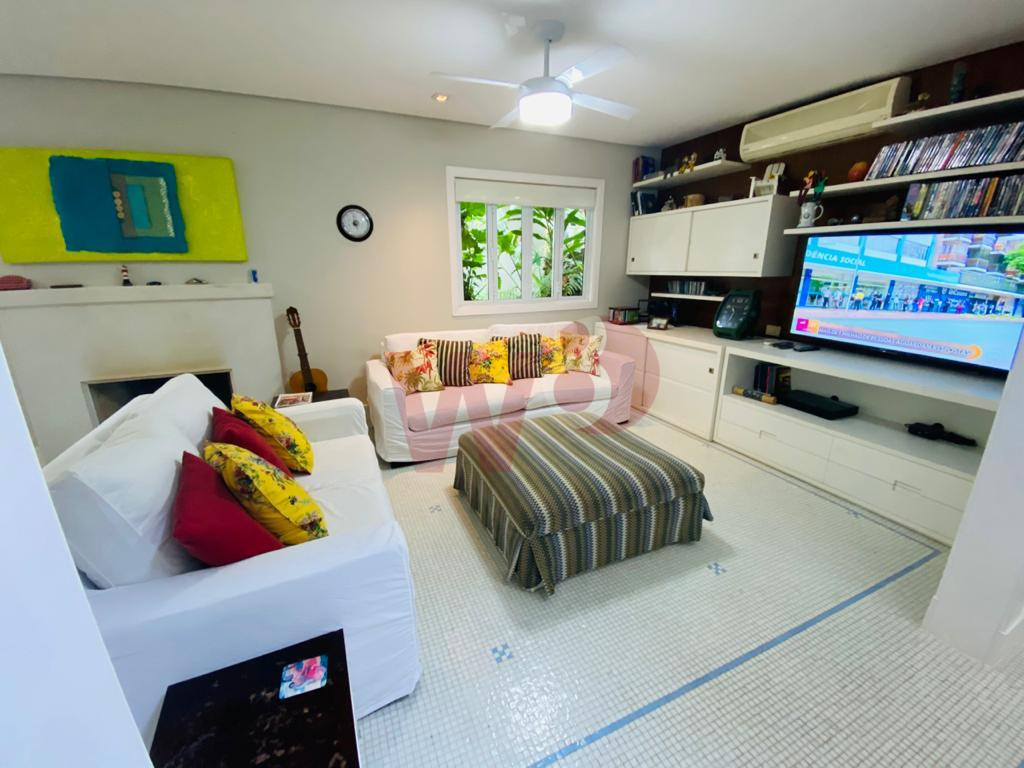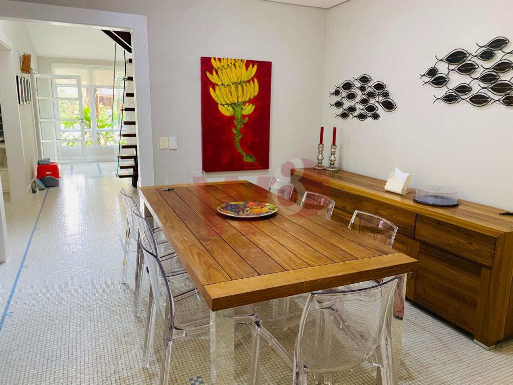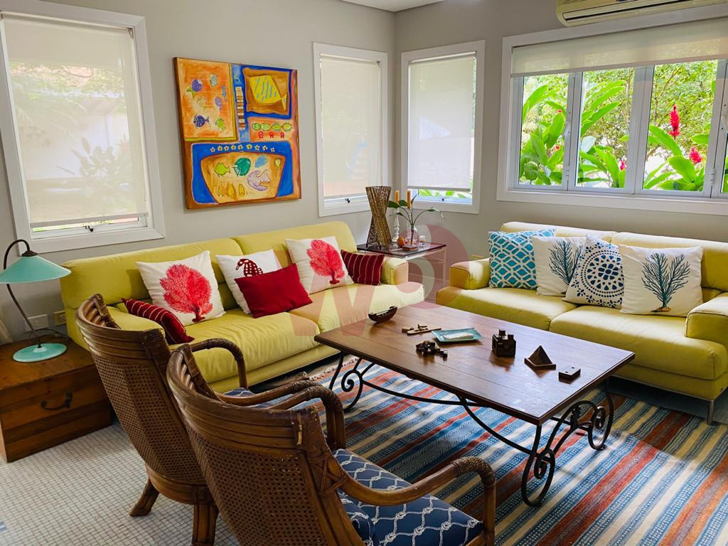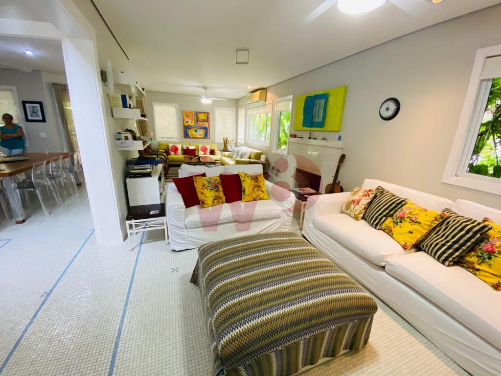 Uma belíssima casa composta por 6 suítes com tv, ar condicionado e ventilador sendo, 4 suítes no piso superior e 3 suítes no térreo, salas de tv, sala de jantar, sala de estar com lareira, cozinha completa, área gourmet com churrasqueira, quintal com jacuzzi, piscina aquecida, sauna seca, vestiário externo com ducha, lavanderia, mesa de bilhar, wi-fi, 11 vagas para autos, vista para a mata, privacidade, distancia aproximada da praia 500m, por dentro do condomínio, capacidade para 14 pessoas.