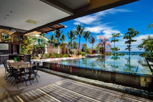 Localizada na praia de maresias, pé na areia, a casa possui 8 lindas e amplas suites, sala em 3 ambientes, cozinha super equipada, lavabo, uma excelente area gourmet, com uma piscina de borda infinita vista para o mar, um belo jardim e vaga para ate 6 carros.