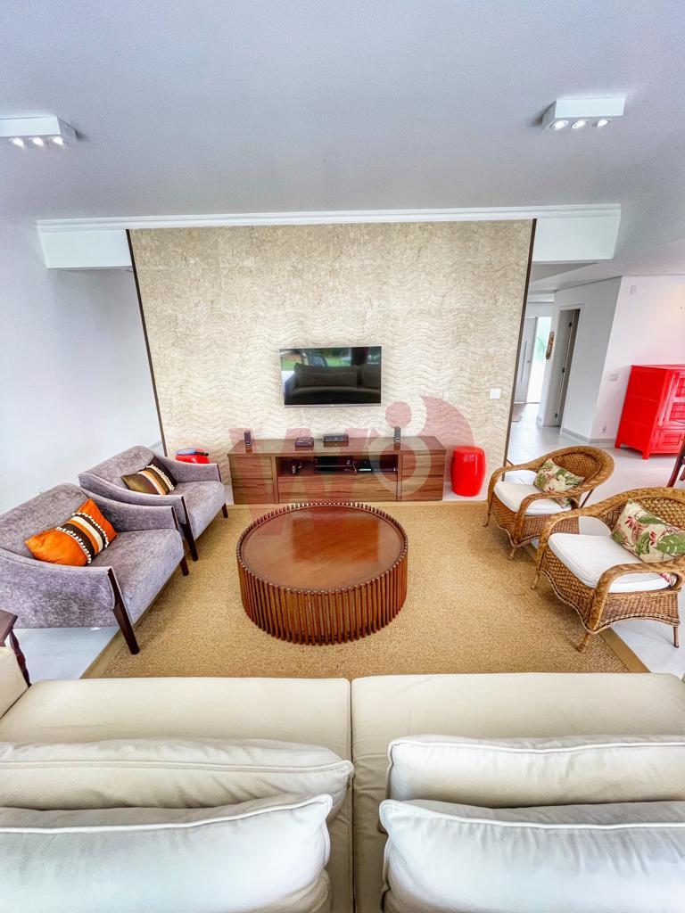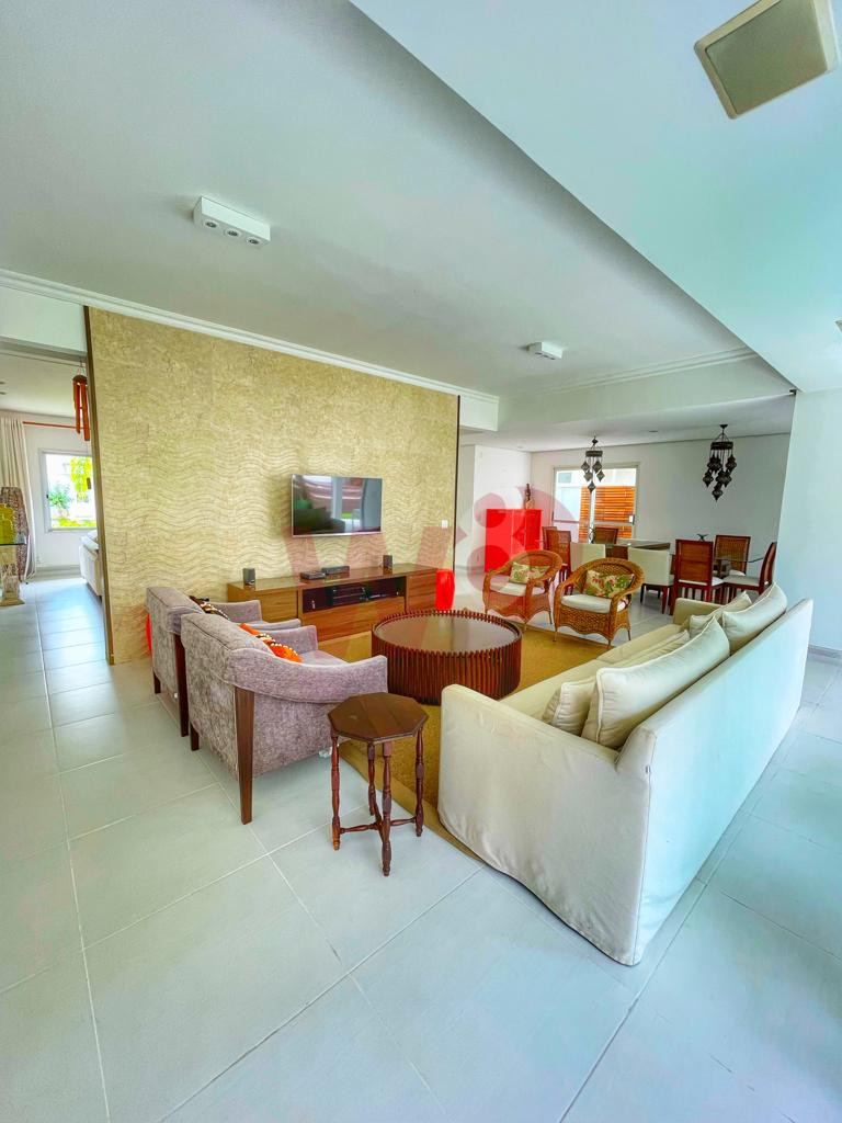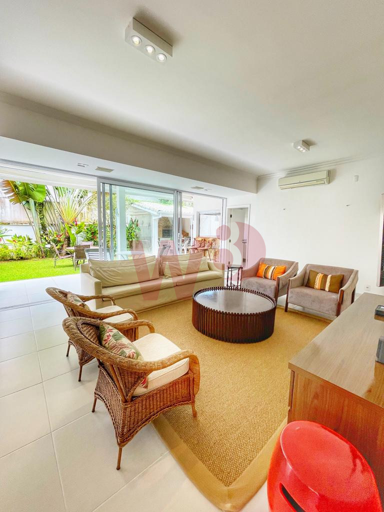Localizada a, aproximadamente, 190m da praia, a casa possui 5 suítes, ar condicionado nos ambientes, ventiladores de teto, Wi-Fi com repetidor, tv a cabo, dependência de funcionária, área gourmet, jacuzzi, máquina de lavar, adega, garagem para 5 carros e jardim.