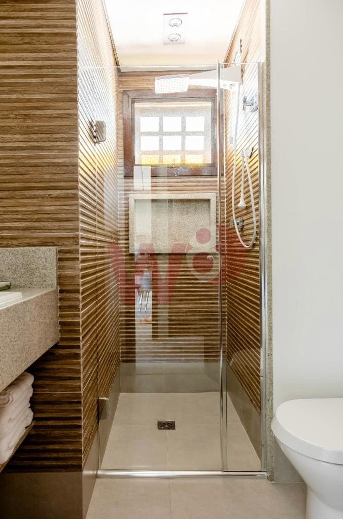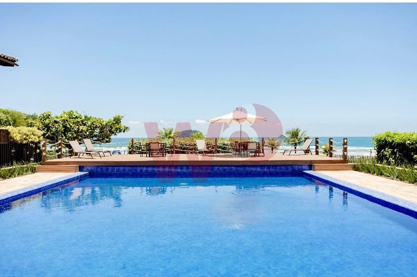 O condomínio oferece serviço de praia, sauna, quadra de tênis, zeladoria, portaria 24h e piscina com vista para mar.