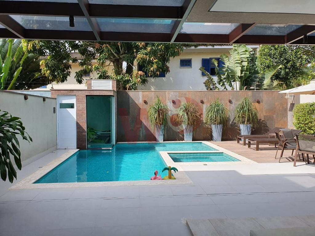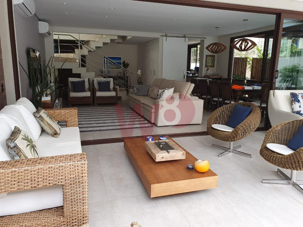 Localizada a 50 metros da praia, a casa possui 5 suites amplas e confortaveis, sala em 2 ambientes, cozinha, lavabo, varanda com piscina e churrasqueira e vagas para ate 2 carros.