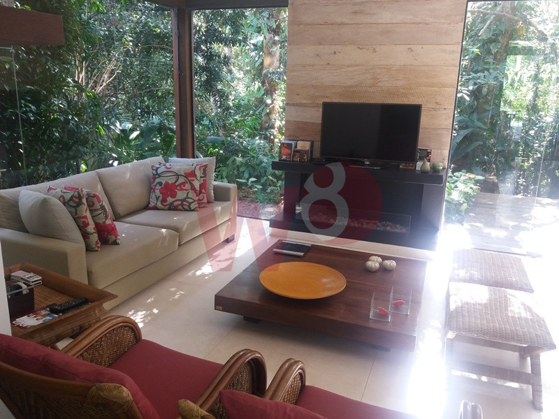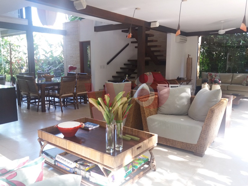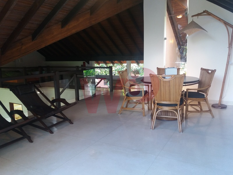 Localizada a, aproximadamente, 700 metros da praia, a casa possui 5 suites, lavabo, sala e 2 ambiente, churrasqueira, piscina privartiva.